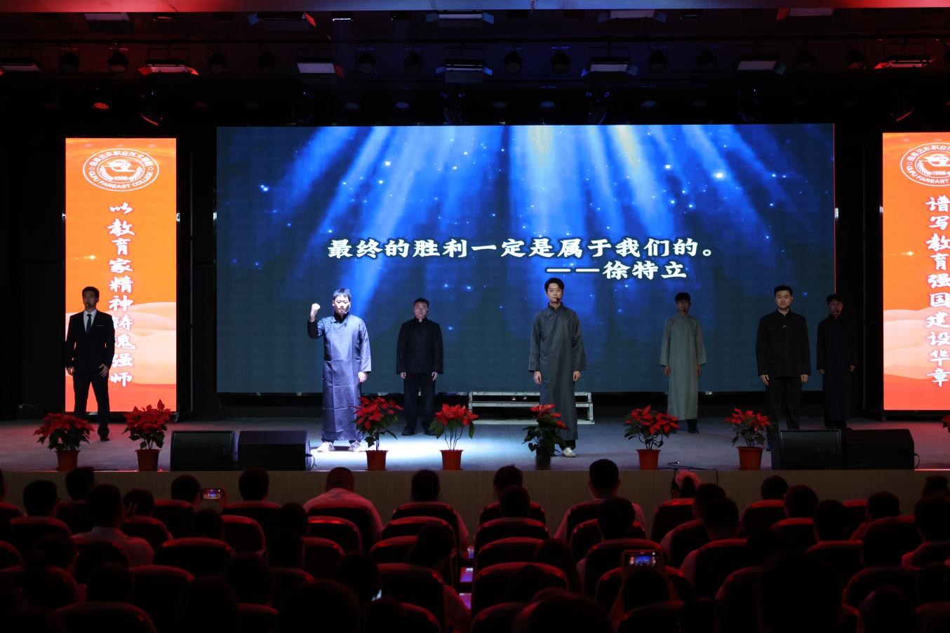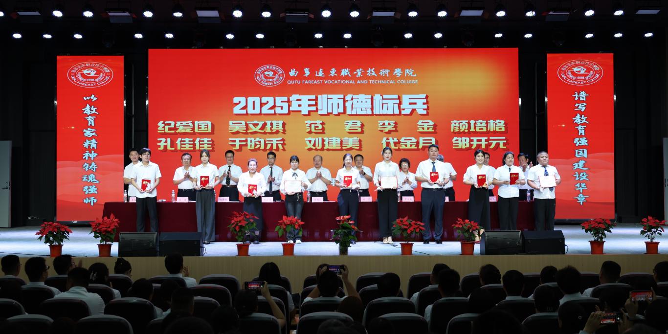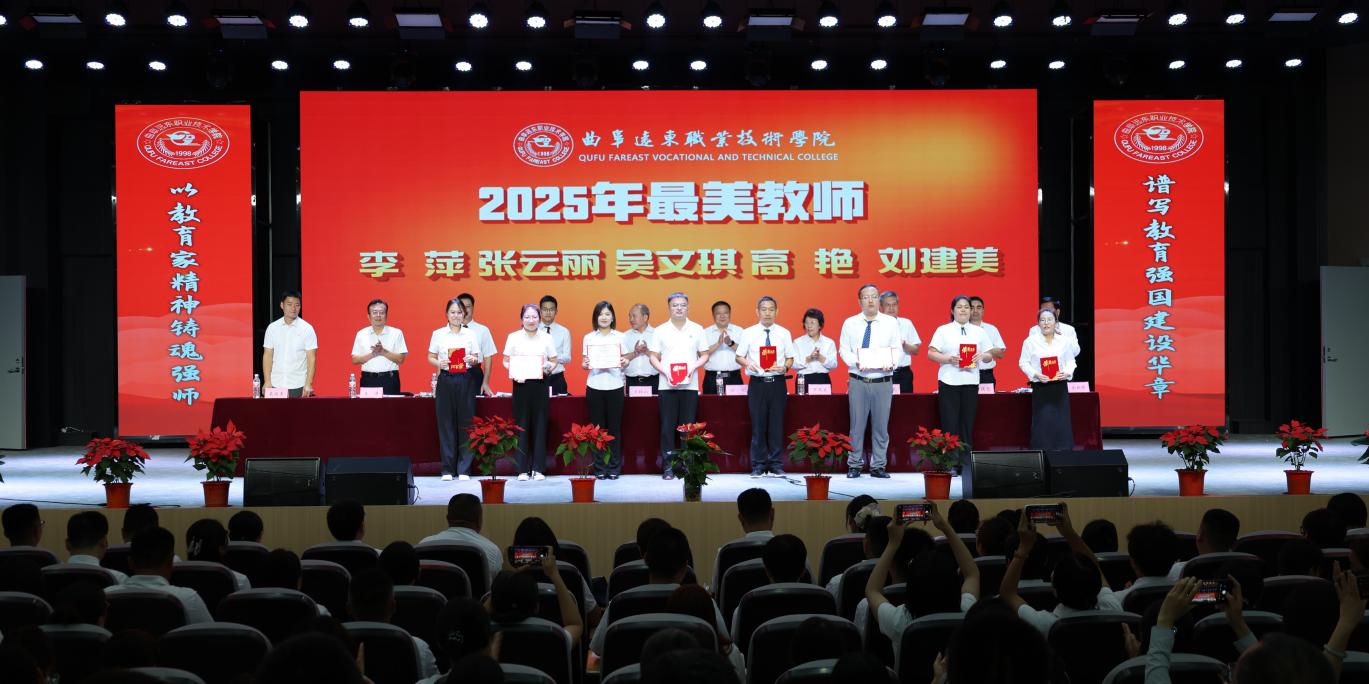 9月10日下午,曲阜遠(yuǎn)東職業(yè)技術(shù)學(xué)院第41個教師節(jié)暨先進(jìn)表彰大會在報告廳隆重舉行。黨委書記王林山代表學(xué)院向辛勤耕耘在教育教學(xué)一線的全體教職工,致以節(jié)日的誠摯問候與崇高敬意。圍繞“學(xué)習(xí)領(lǐng)悟踐行教育家精神”提出三點希望:一是領(lǐng)會教育家精神,打牢基礎(chǔ)穩(wěn)方向,要求教職工深刻把握教育家精神的核心內(nèi)涵,將其作為教育教學(xué)工作的思想根基,確保辦學(xué)育人方向不偏、根基不搖;二是踐行教育家精神,深化改革提效能,鼓勵教職工以教育家精神為指引,積極投身教育教學(xué)改革實踐,不斷優(yōu)化教學(xué)方法、提升育人效能;三是弘揚(yáng)教育家精神,推動學(xué)院高質(zhì)量發(fā)展,強(qiáng)調(diào)要以弘揚(yáng)教育家精神為主線,將精神力量轉(zhuǎn)化為推動學(xué)院內(nèi)涵建設(shè)、實現(xiàn)高質(zhì)量發(fā)展的實際行動,為學(xué)院長遠(yuǎn)發(fā)展注入強(qiáng)勁動力。