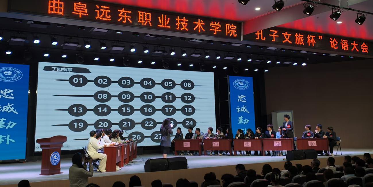 本次大賽吸引了來(lái)自全校各二級(jí)學(xué)院的九支學(xué)生代表隊(duì)參與角逐,充分展現(xiàn)了遠(yuǎn)東學(xué)子對(duì)傳統(tǒng)文化的熱愛(ài)與深厚的知識(shí)儲(chǔ)備。賽事設(shè)計(jì)別出心裁,緊密?chē)@《論語(yǔ)》經(jīng)典與現(xiàn)代職業(yè)教育特點(diǎn),設(shè)置了“了如指掌”“當(dāng)仁不讓”“勇者不懼”“游于藝”四個(gè)循序漸進(jìn)的競(jìng)賽環(huán)節(jié)。